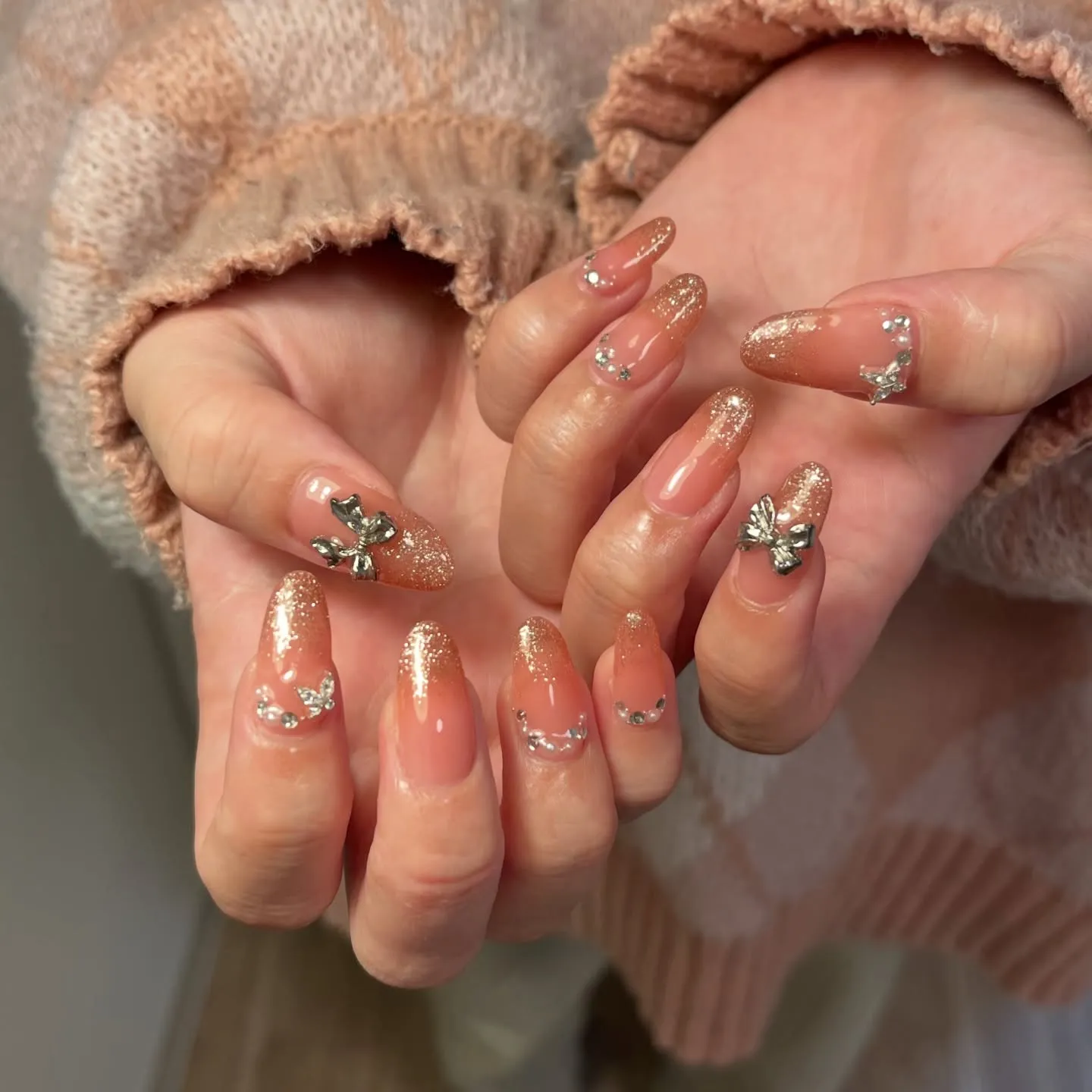 ラメダイヤパールをたくさん散らばせたデザイン🎀✨