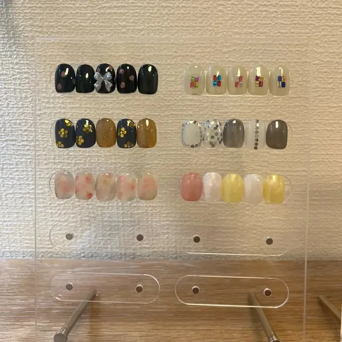 これまでに手掛けたネイルデザインを一部掲載しており、シンプルなものからアートを効かせたデザインまで、実際の仕上がりを写真でご覧いただけます。また、好みや季節に合ったスタイルを考える際の参考資料としても活用できるよう、幅広いテイストを紹介しています。どのデザインもお客様の要望を形にしたものばかりで、ネイル選びのヒントとしてご覧いただけます。